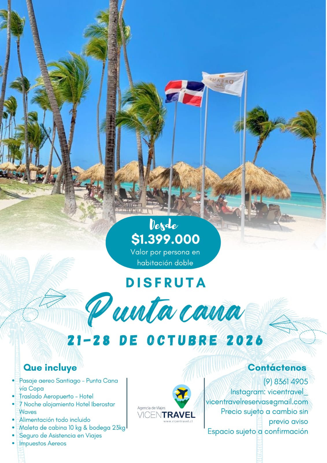 en Vicentravel nos comprometemos a hacer de cada viaje una experiencia sin preocupaciones. A través de nuestro enfoque cercano y profesional, nuestros clientes pueden disfrutar de sus vacaciones sabiendo que todo está cuidadosamente organizado. Vicentravel, más que una agencia, ¡una familia que te lleva a explorar el mundo!
